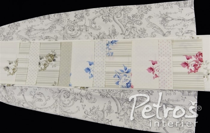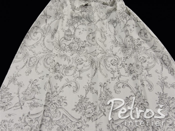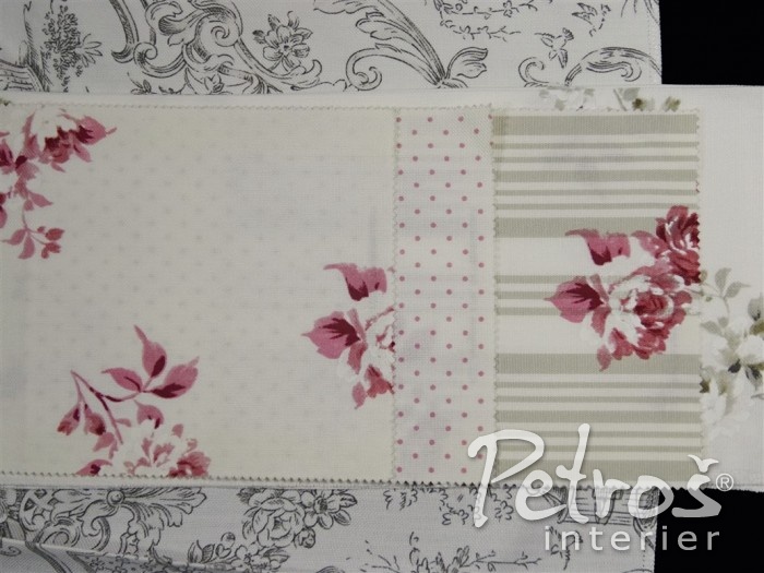 Závěsy Toulon mají po celé ploše romantickou kresbu. V nabídce jsou ve starorůžové, modré a béžové barvě na přírodně bílém podkladu.