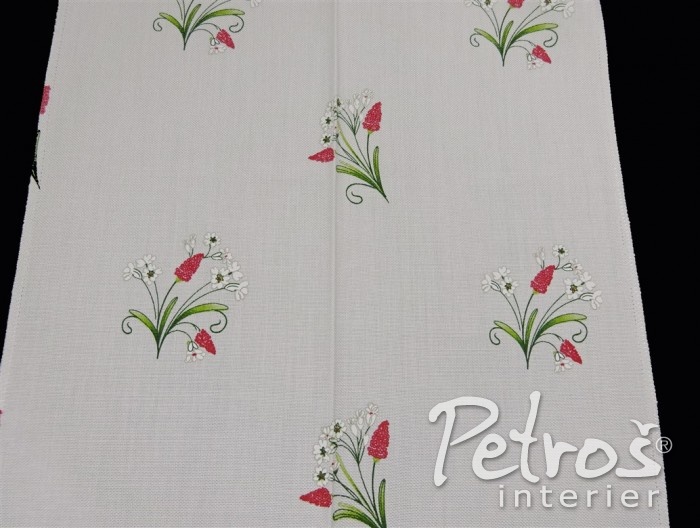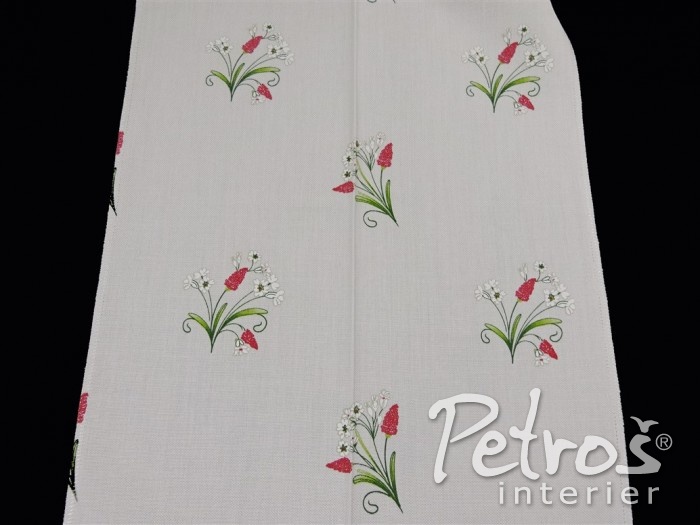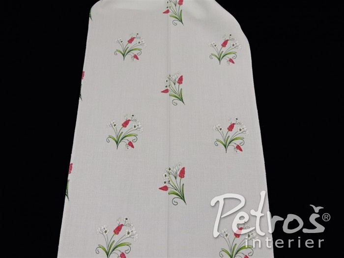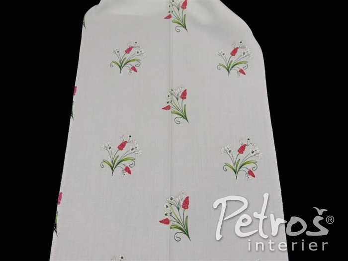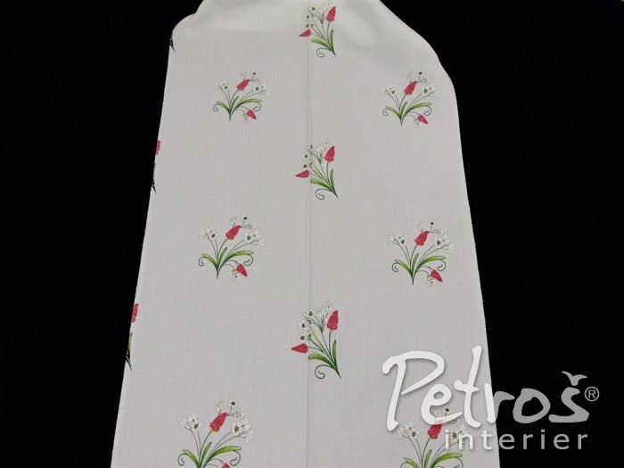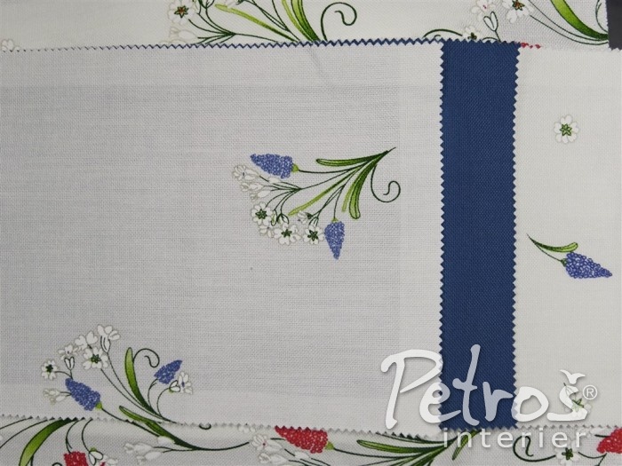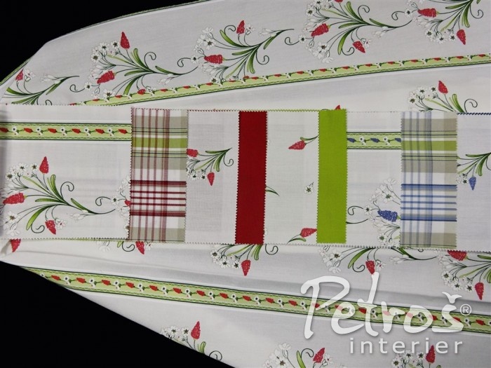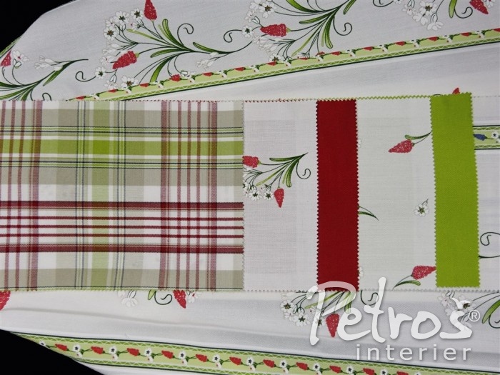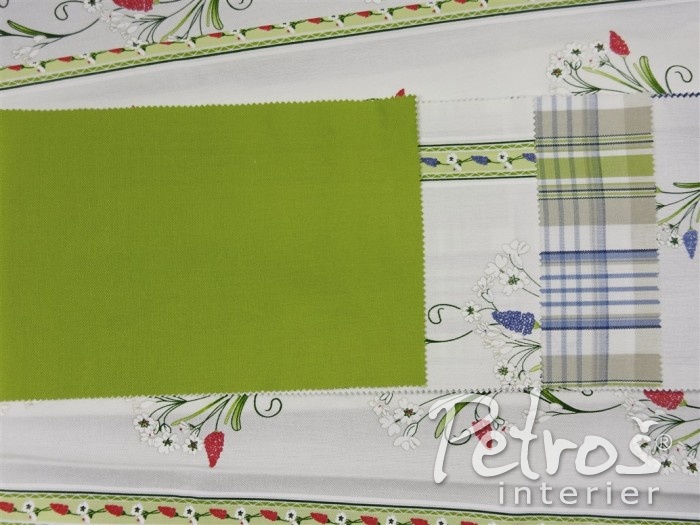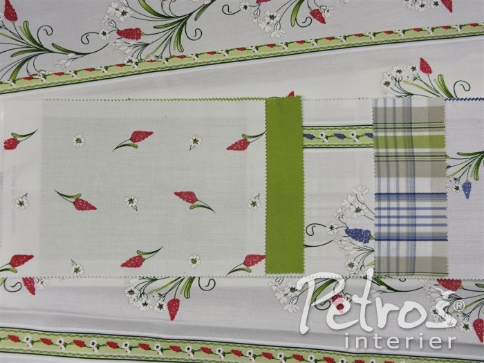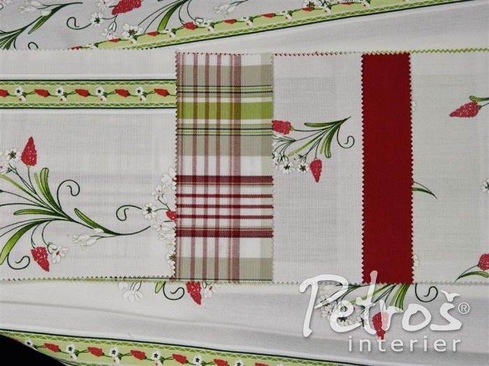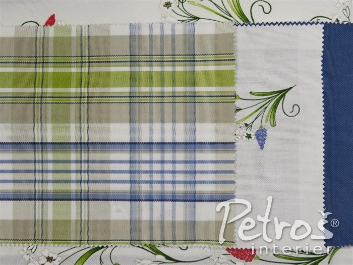 Tyto rustikální závěsy mají tištěný vzor s venkovským motivem květů. Podklad je v přírodní bílé barvě a vzor je ve dvou barevných variantách. V jedné variantě převládá tlumeně zelená barva a doplňuje ji tmavě červená. Druhá varianta je v kombinaci tlumeně zelené a modré barvy. K těmto závěsům si můžete vybrat ke zkombinování i látky na stejném podkladu a ve stejných barvách, ale s jiným, stylově podobným, vzorem, s kárem, nebo jednobarevné.
