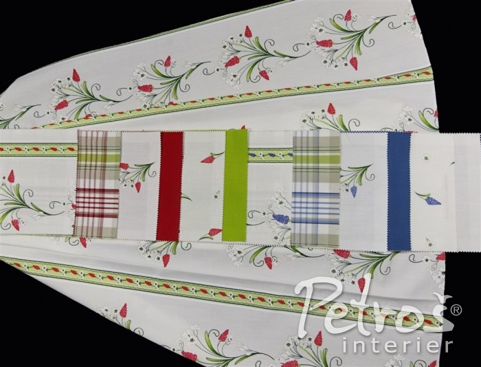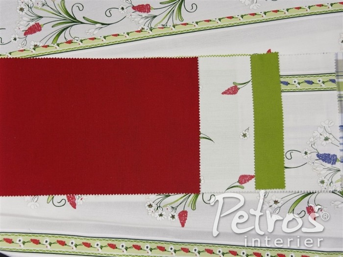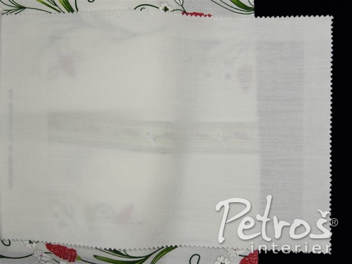Tyto rustikální závěsy mají tištěný vzor s venkovským motivem drobných kvítků. Podklad je v přírodní bílé barvě a vzor je ve dvou barevných variantách. V jedné variantě převládá tlumeně zelená barva a doplňuje ji tmavě červená. Druhá varianta je v kombinaci tlumeně zelené a modré barvy. K těmto závěsům si můžete vybrat ke zkombinování i látky na stejném podkladu a ve stejných barvách, ale s jiným, stylově podobným, vzorem, s kárem, nebo jednobarevné.
