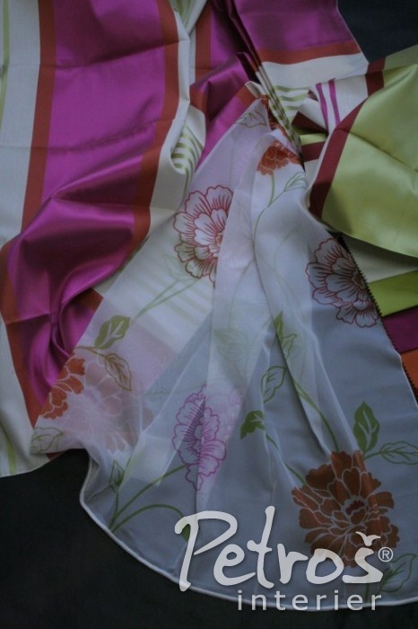 Pruhované závěsy Gianni 8–1790–060 lze zkombinovat s jednobarevnými závěsy Tyler 8–3114–060 nebo se záclonou Coco 8–4704–060.