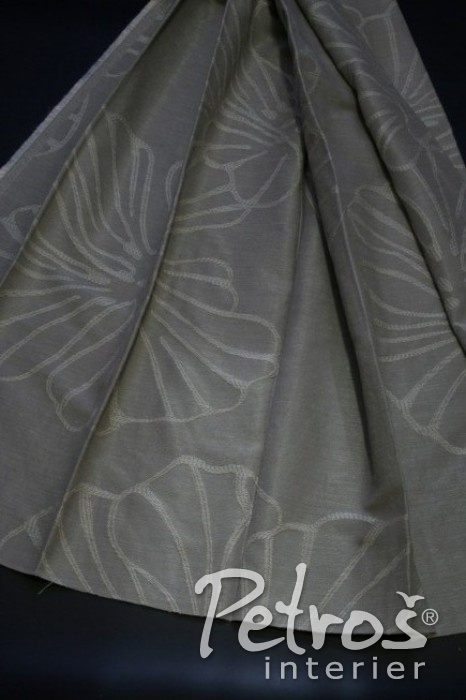 Přírodní závěsy Belle 15 v šedobéžové barvě s vytkávaným vzorem jsou vyrobeny ze směsi viskózy a polyesteru.