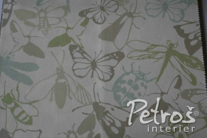 Romantické bavlněné studentské závěsy Papillon Linen mají potisk s motivem motýlů v pastelových barvách na přírodně bílém podkladu.