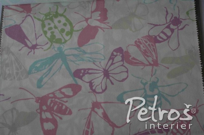 Romantické bavlněné studentské závěsy Papillon Rose mají potisk s motivem motýlů v pastelových barvách na přírodně bílém podkladu.