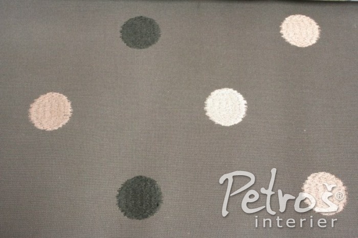 Originální závěsy Fez Ash mají vyšívané větší barevné puntíky laděné do šedé a růžové barvy na podkladu v přírodním stylu ze směsi polyesteru a přírodních vláken. Tato látka se hodí na závěsy a skvěle se dá využít například i na dekorační polštáře.