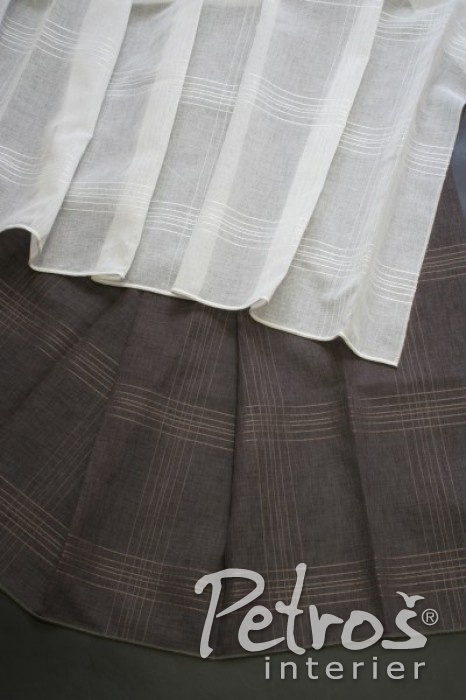 Lehké poloprůhledné závěsy (In between) Hedera v přírodním stylu si můžete vybrat v krémové nebo tmavě hnědé barvě. Tyto závěsy jsou zdobeny velmi jemným kárem tón v tonu. Dají se použít i jako hustější záclony. Tyto záclony – závěsy jsou opatřeny olůvkem a vyrobeny jsou ve výšce 300 centimetrů.