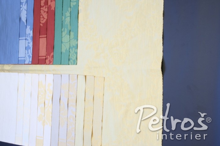 Avelino s klasickým vzorem jsou vyrobeny ze směsi bavlny a polyesteru v šíři 280 centimetrů.