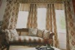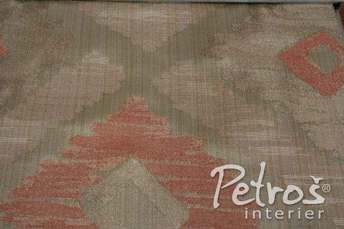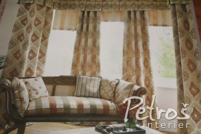 Vzorované závěsy Meknes Amber v odstínech béžové a oranžové barvy jsou vyrobeny ze směsi polyesteru a bavlny. Tato látka se dá krásně využít nejen na závěsy, ale také na polštáře nebo jako lehká potahová látka.