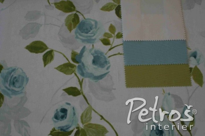 Krásné vzorované luxusní závěsy Melrose jsou vyrobeny z čisté bavlny. Na podkladu v přírodně bílé barvě je potisk květů v odstínech tyrkysově modré a zelené barvy. Závěsy s květovaným vzorem je také možné doplnit závěsy v jednobarevném provedení v přesně sladěných odstínech.