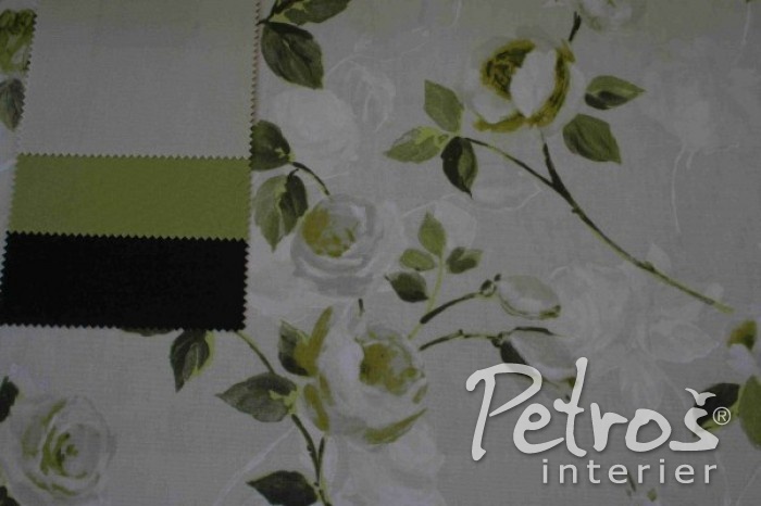 Krásné vzorované luxusní závěsy Melrose jsou vyrobeny z čisté bavlny. Na podkladu v přírodně bílé barvě je potisk květů v odstínech zelené a černé barvy. Závěsy s květovaným vzorem je také možné doplnit závěsy v jednobarevném provedení v přesně sladěných odstínech.