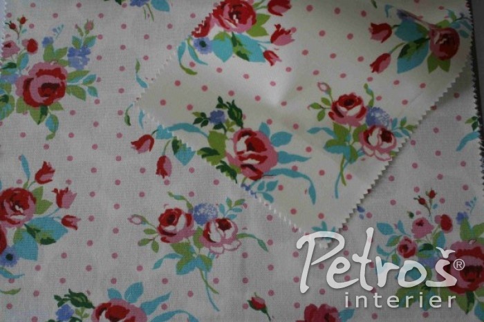 Závěsy Rose s květinovým vzorem jsou vyrobeny z čisté bavlny. Tyto vzorované závěsy je možné doplnit také ubrusem z PVC se stejným vzorem.