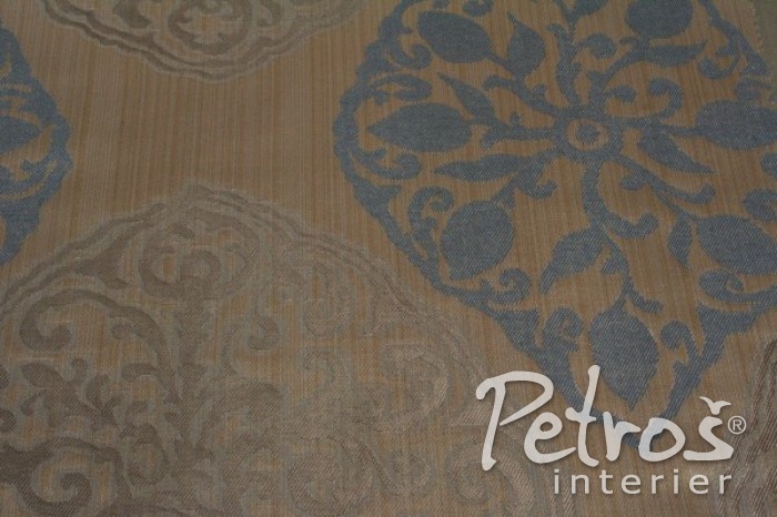 Luxusní designové závěsy Tarfaya Denim mají vzor v denimově modré a béžové barvě na zlatavém podkladu. Závěsy Trafaya je možné použít i na lehké čalounění. Tyto závěsy jsou vyrobeny ze směsi bavlny a polyesteru.